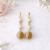 .עגיל מיוחד עם פניני מים מתוקים לבנות או שחורות ו׳כוורות׳ שזורות בעבודת יד ייחודית מצמח הזהב