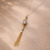 .שרשרת מקורית ויפיפיה עם אבני חן טבעית כלואות בתוך תליון ספירלי שזור בעבודת יד ייחודית מצמח הזהב